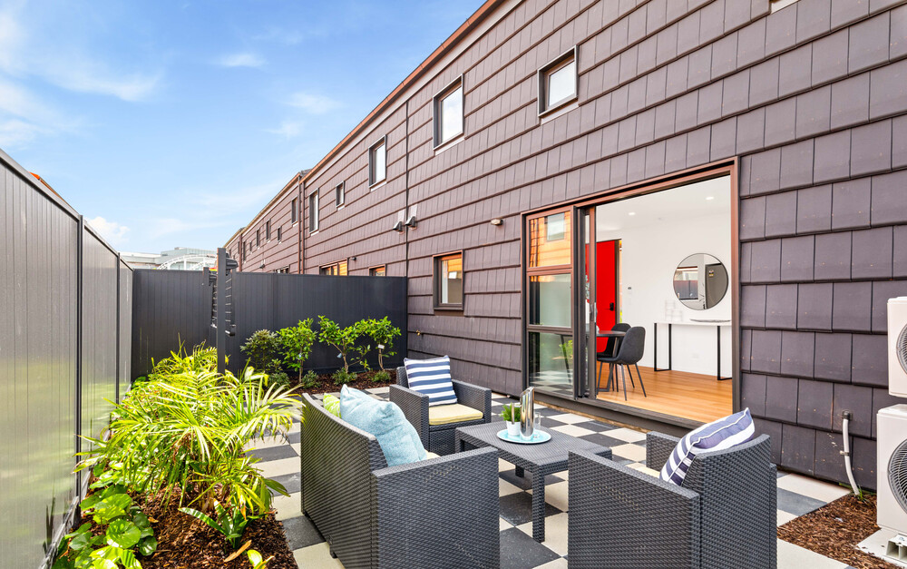 Kōtuitui Courtyards is the second stage of Kōtuitui completed in late 2021, with all residents having moved in by the end of January 2022. Designed to complement Kōtuitui Terraces yet have its own unique look, each terraced home was designed for modern living while incorporating a distinctive use of hard wearing materials to create a fresh urban look.