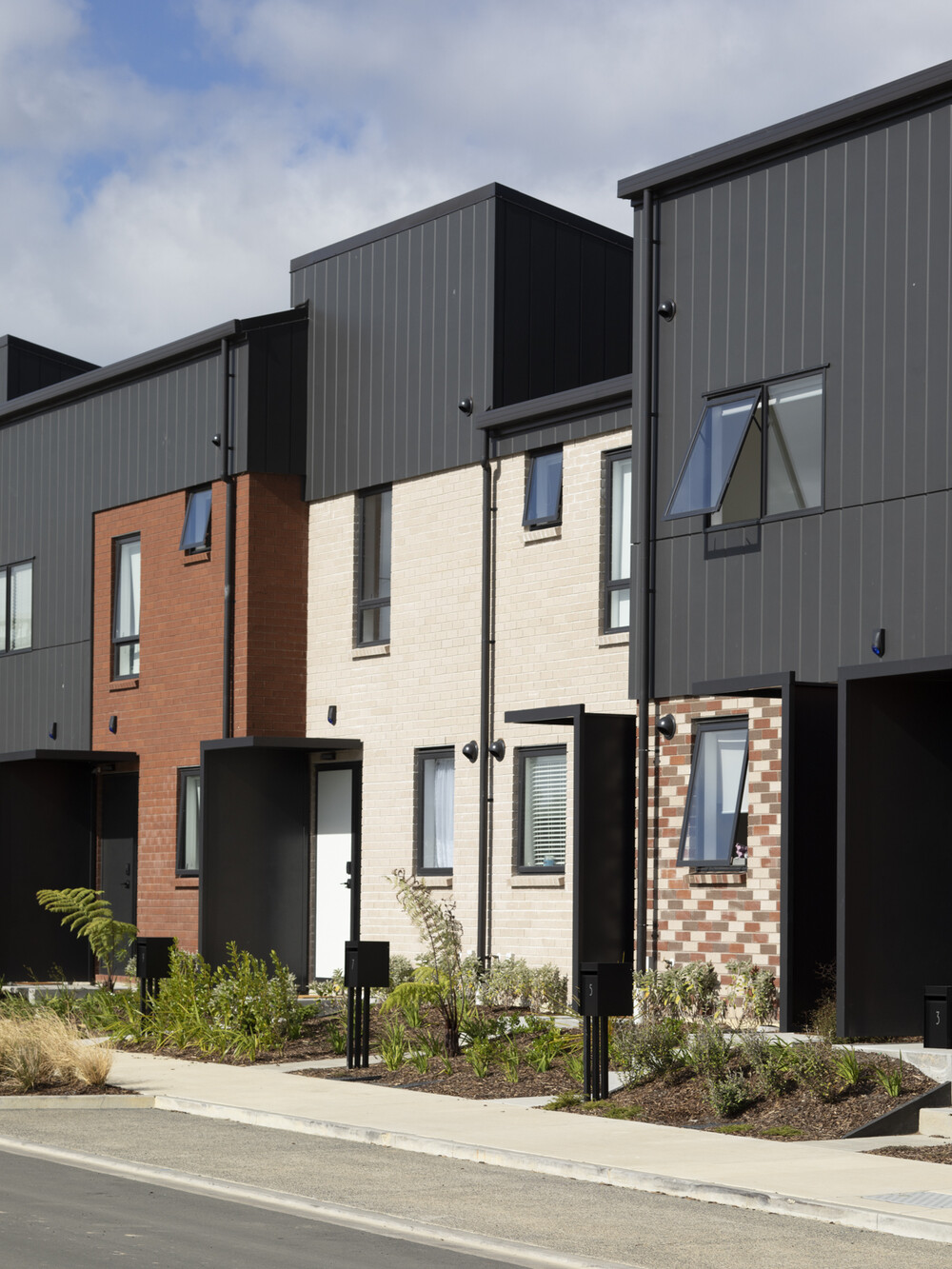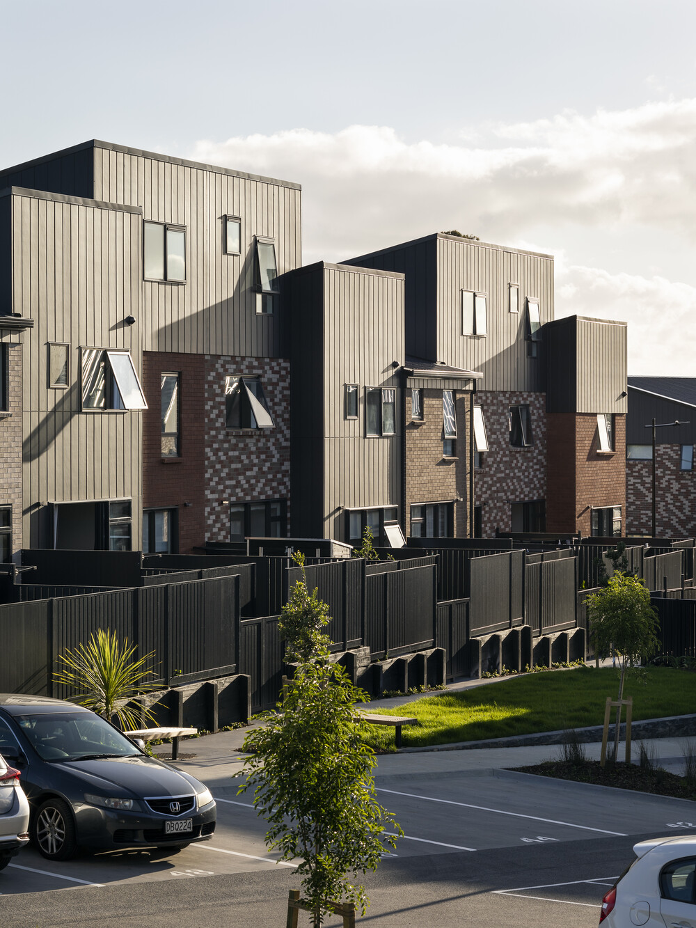 Designed by award winning Crosson Architects, Kōtuitui is home to 61 two and three bedroom homes, each with its own privately landscaped garden. These extend out to the streetscape and a pocket park - a place for children to play and families to picnic. Careful consideration was given to the roading to create a quiet, safe and peaceful community for residents and visitors to enjoy. Kōtuitui Terraces sold out quickly and all homes are currently occupied.