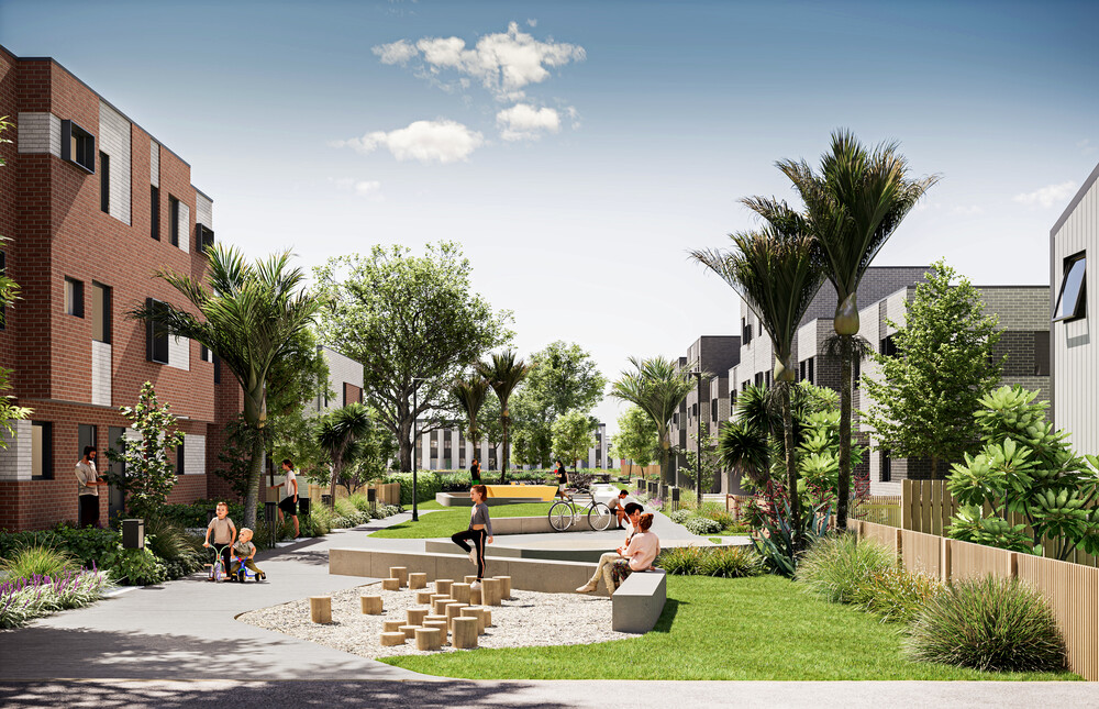 Wirihana is a large scale (11ha) masterplanned residential development, located in close proximity to Manukau City centre, that benefits from all of the local town centre amenities and public transport hubs. It is well connected to motorway on-ramps in all directions including SH1 and SH20. Working with development partner Te Ākitai Waiohua, the site was purchased from the Ministry of Housing and Urban Development (MHUD) as a Land for Housing Project, with KiwiBuild providing underwrite support for nearly 100 homes in Stage 1. Crosson Architects and Isthmus, both industry leaders in their fields, have designed the project incorporating best practice philosophies throughout. The masterplan leverages off the existing open spaces around the perimeter of the site and within it, as well as the stormwater management features. A wide range of home typologies are to be provided (standalone, duplex, terraced houses) with terraced homes being the predominant typology.